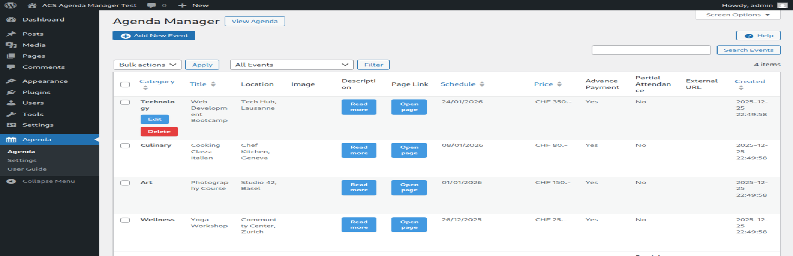 wordpress.org/plugins/acs-agenda-managerA WordPress plugin for managing and displaying event agendas. Perfect for workshops, courses, conferences, and event organizers.
