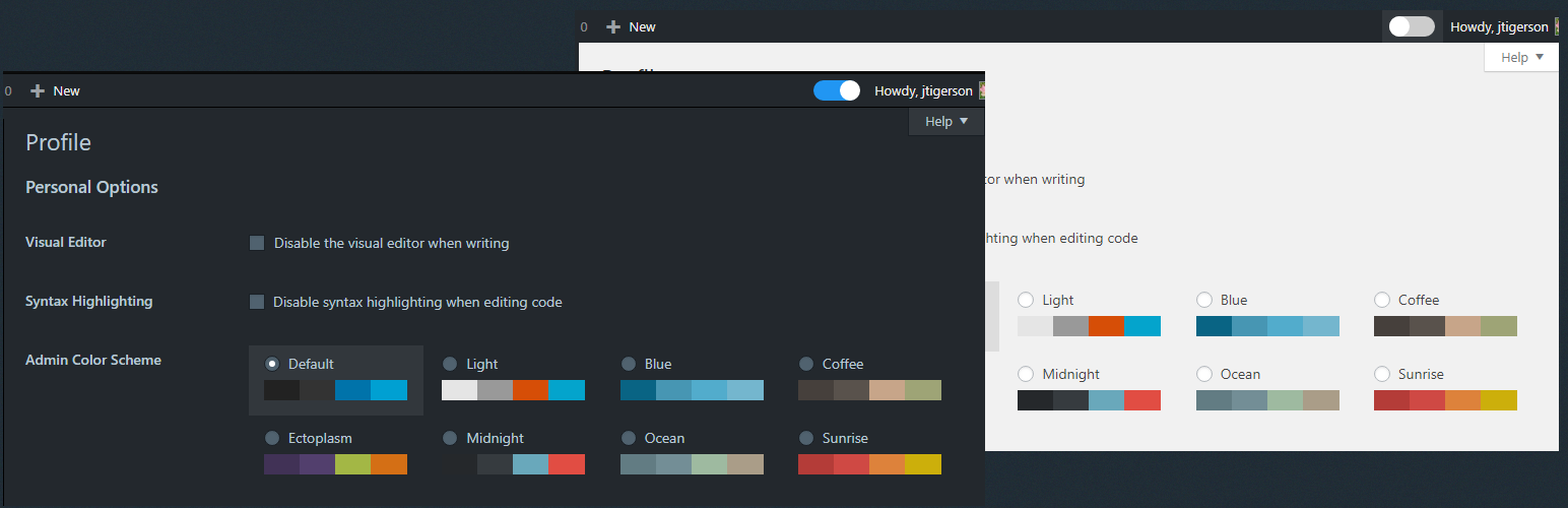 A simple plugin that enables dark mode in your admin area.