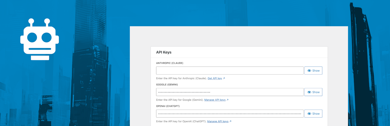 wordpress.org/plugins/ai-servicesMakes AI centrally available in WordPress, whether via PHP, REST API, JavaScript, or WP-CLI - for any provider.