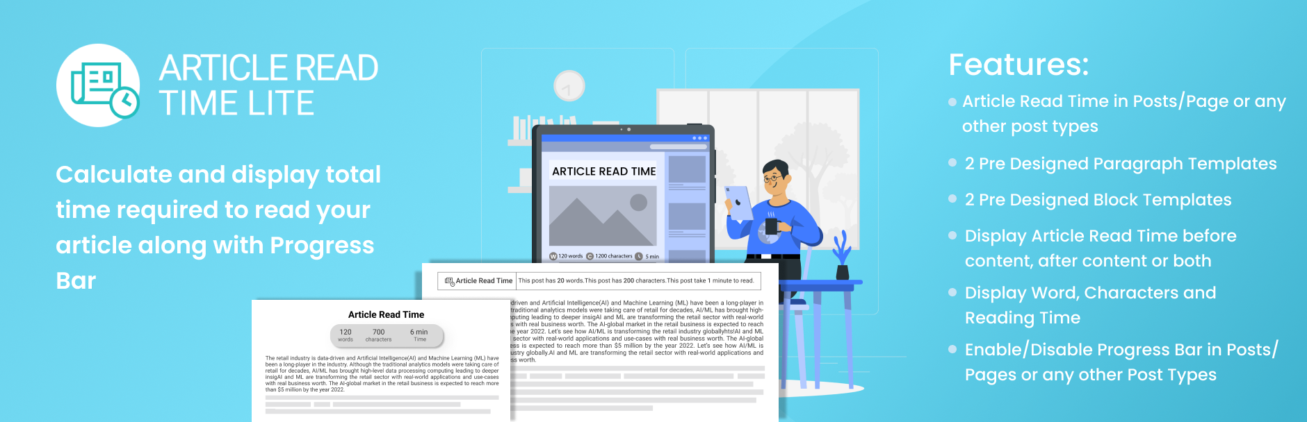 wordpress.org/plugins/article-read-time-liteCalculate and display total reading time| Calculate and display Characters and Words | Progress Bar