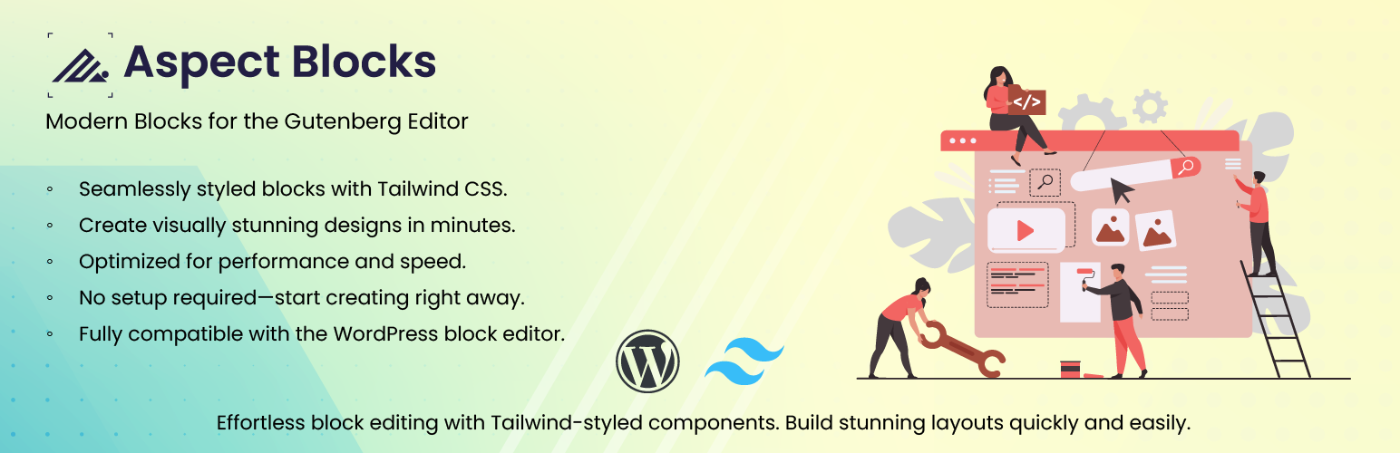 wordpress.org/plugins/aspect-blocks๐ Aspect Blocks is a Gutenberg plugin that leverages Tailwind CSS for seamless style customization, providing a modern and responsive design. ๐