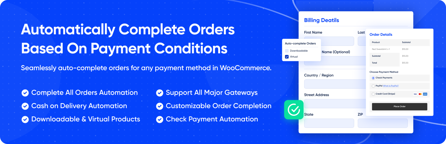 Enhance your WooCommerce store with Autocomplete Orders. Automatically complete orders after payment, perfect for virtual goods and subscriptions.