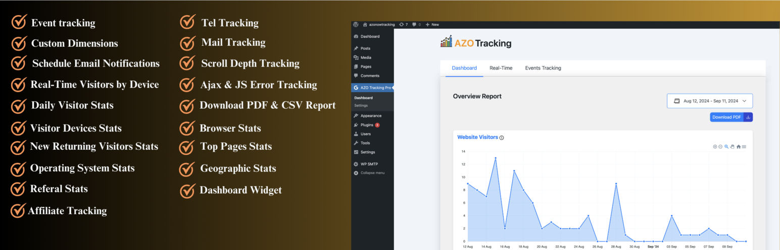 wordpress.org/plugins/azo-trackingAZO Tracking is a comprehensive plugin that integrates Google Analytics (GA4) into your WordPress website. It shows analytics data with elegant UI/UX.