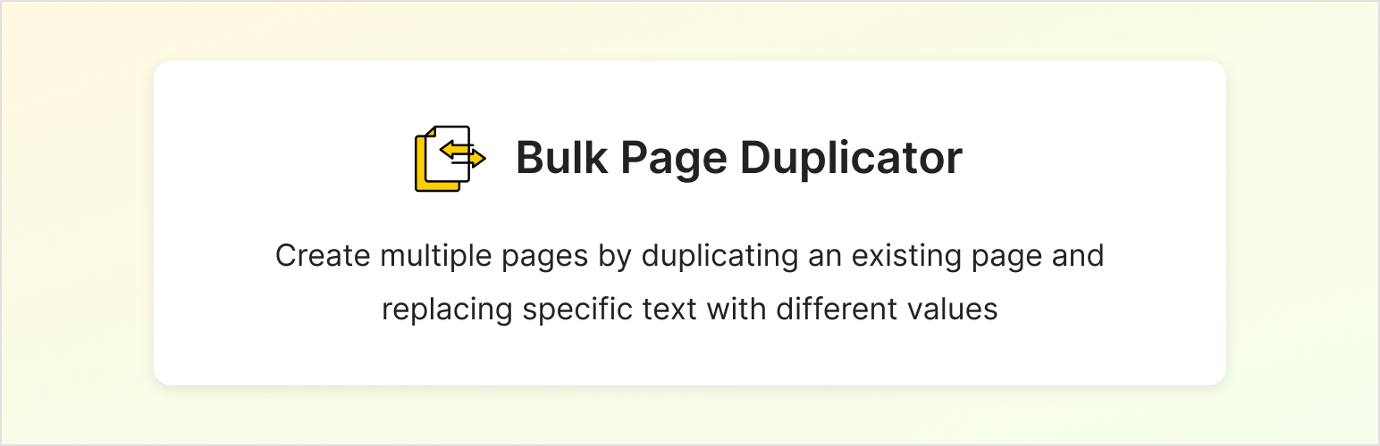 wordpress.org/plugins/bulk-page-duplicatorCreate multiple pages by duplicating an existing page and replacing specific text with different values. Supports Elementor, Beaver Builder, Bricks, a …