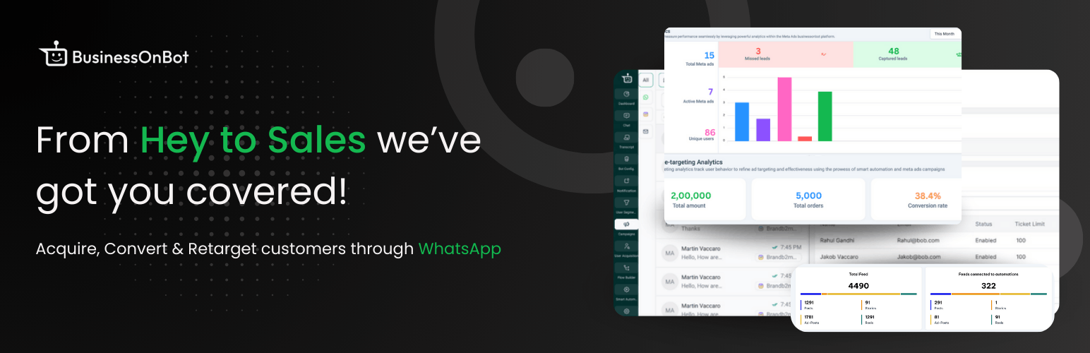 wordpress.org/plugins/businessonbotBoosts D2C brands via WhatsApp & Instagram, maximizing user acquisition & growth through platform potential.