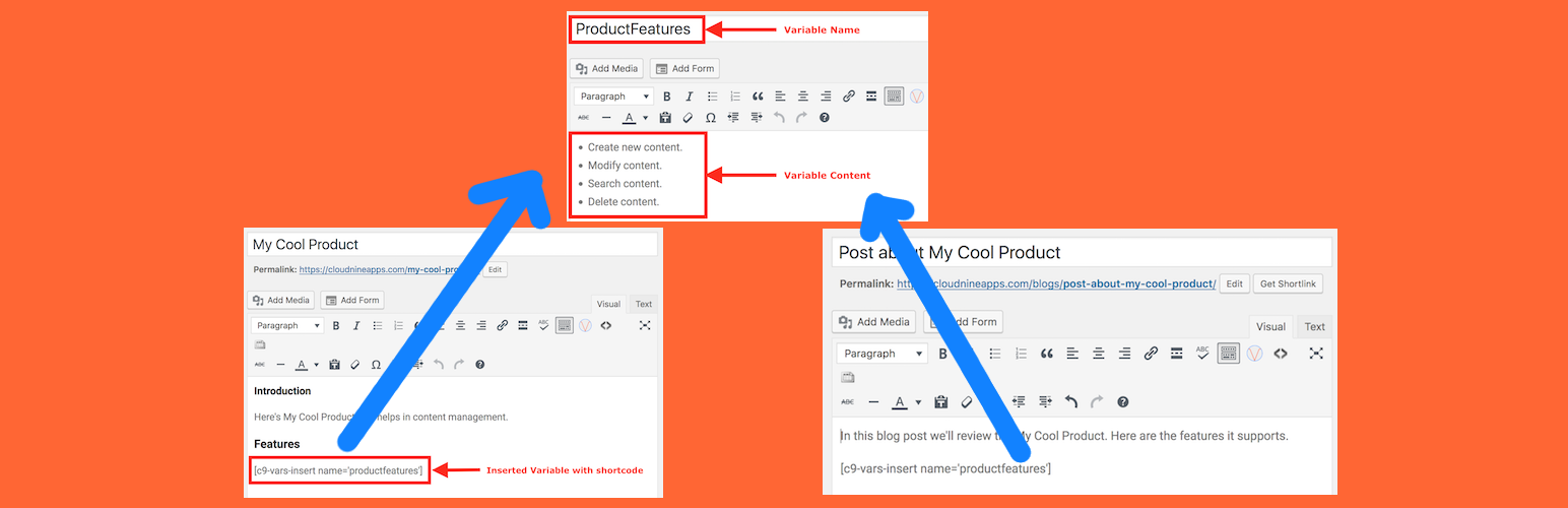 wordpress.org/plugins/c9-variablesUse variables to make smart reusable content. The basic plugin is fully functional and supports up to 10 variables. The Pro plugin supports unlimited …