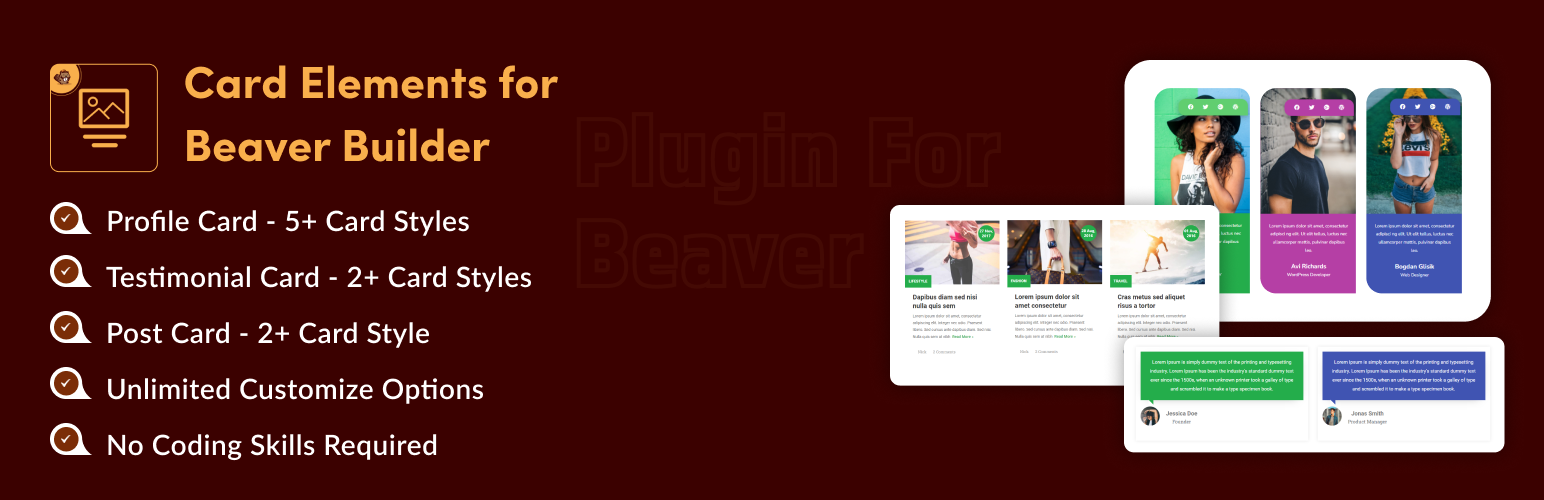wordpress.org/plugins/card-elements-for-beaver-builderShowcase useful elements with card style for Beaver Builder page builder.