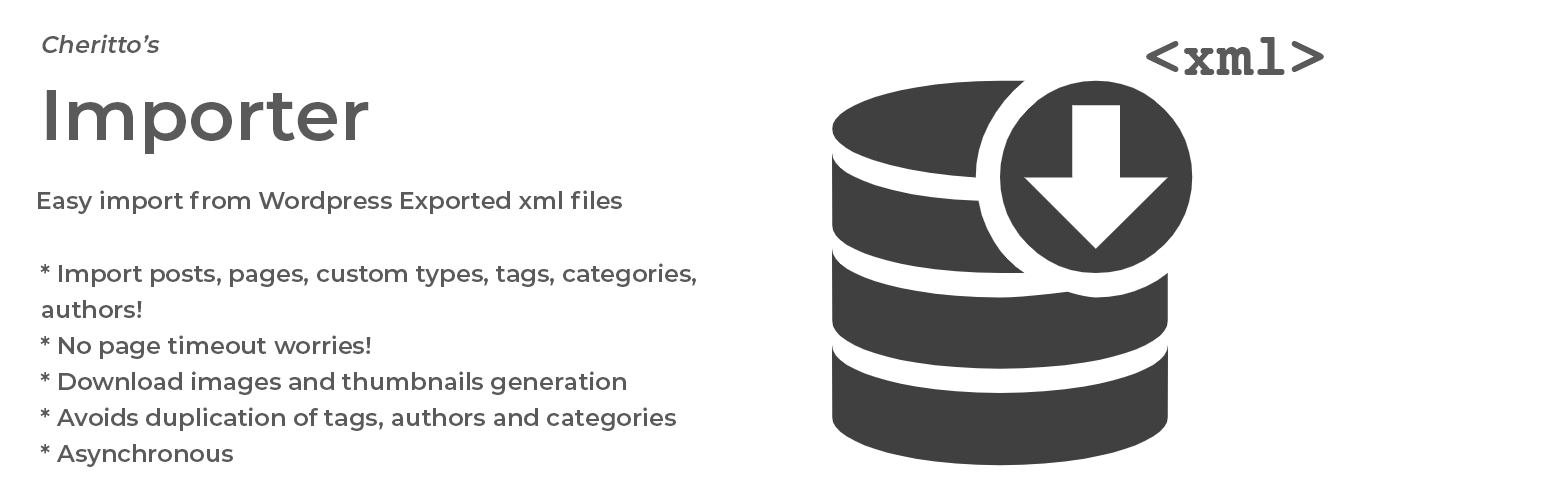 wordpress.org/plugins/cherittos-importerSafely import posts, comments, pages, categories, tags and more from Wordpress Export files!