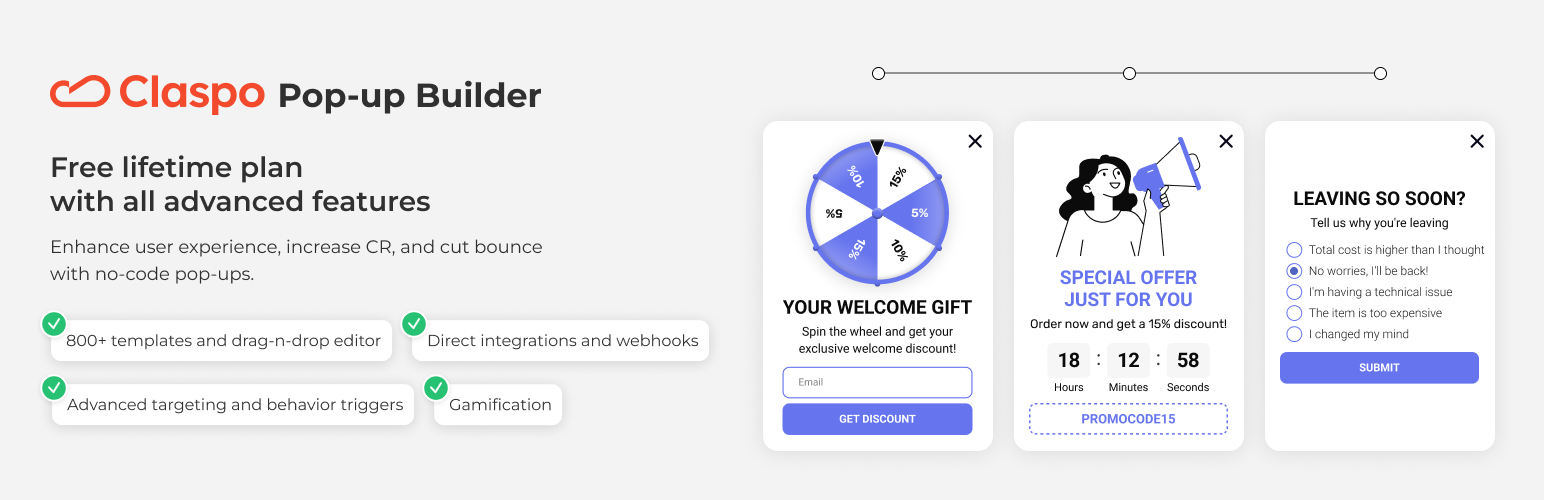 Claspo – Popups, Spin the Wheel & Email Capture Alternatives