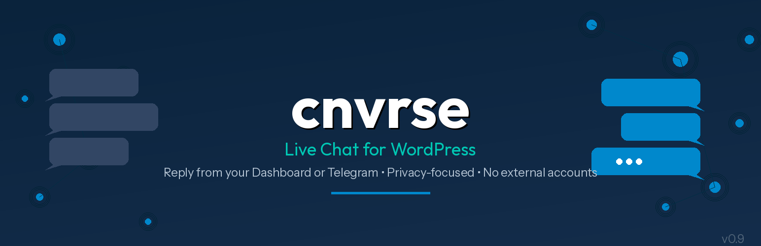 wordpress.org/plugins/cnvrseAdd live chat to WordPress in seconds. Reply from your dashboard or Telegram. No external accounts, no monthly fees, 100% privacy-focused.