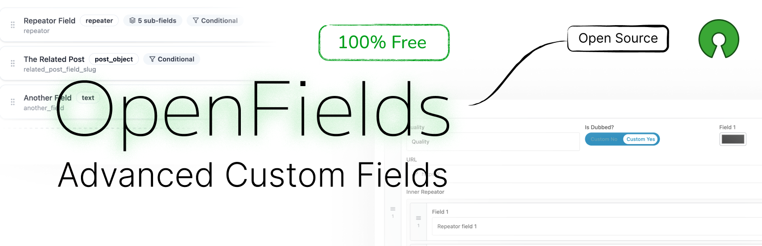 wordpress.org/plugins/codeideal-open-fieldsA free, modern custom fields plugin for WordPress. Build field groups with a visual editor — no code required.