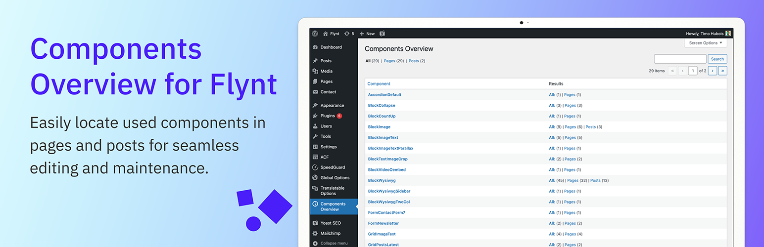 wordpress.org/plugins/components-overview-flyntGet an overview of where components of the Flynt theme currently used.