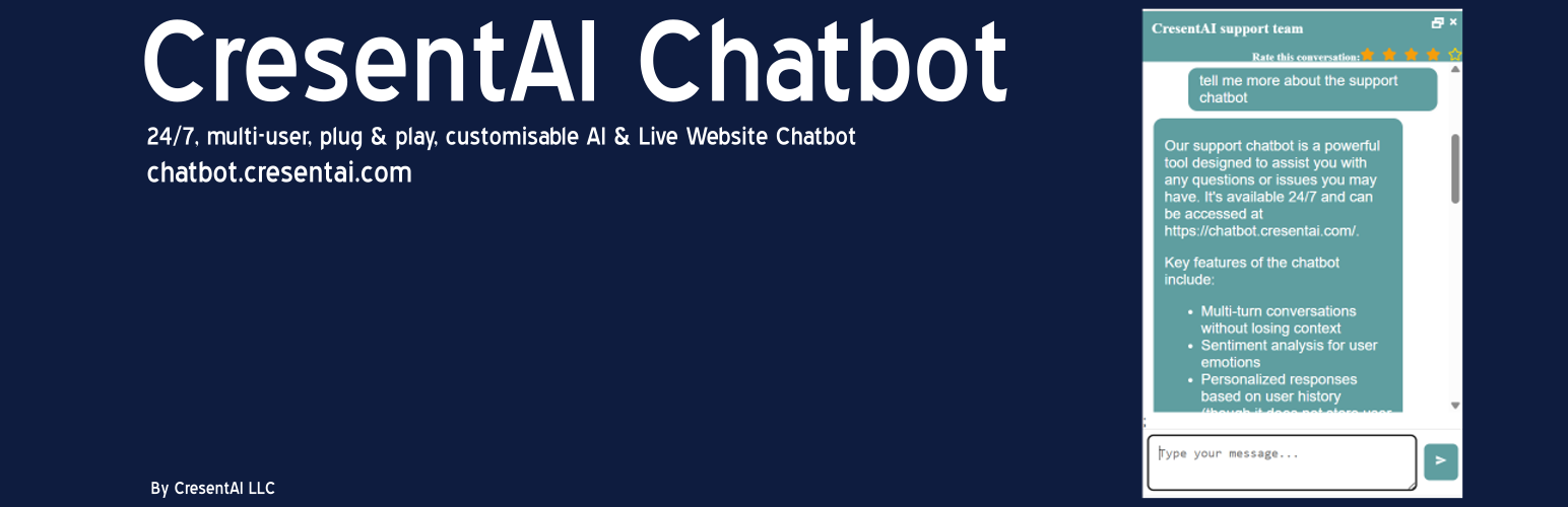 wordpress.org/plugins/cresentai-chatbotFree Plug-and-play trainable AI website chatbot with live chat feature. 2 minutes setup, perfect for lead generation, FAQs, and customer support.