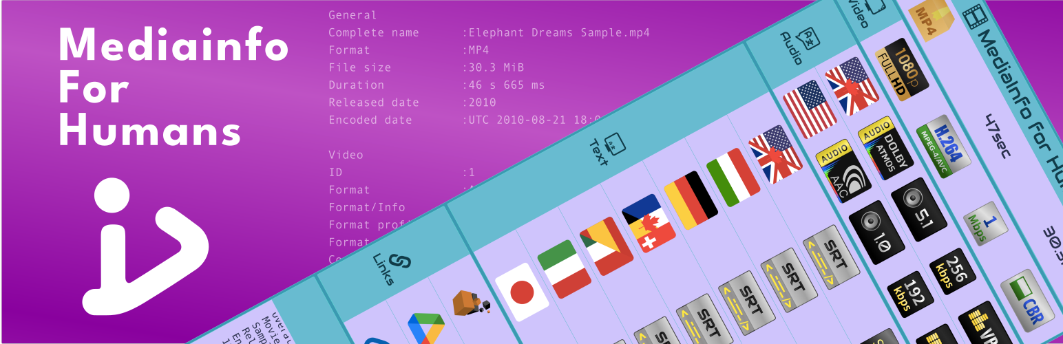 wordpress.org/plugins/cute-mediainfoCustomizable plugin to display MediaInfo for humans.