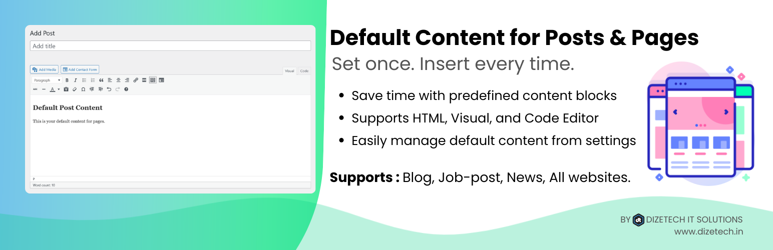 wordpress.org/plugins/default-contentInserts customizable default HTML content into the WordPress editor when creating a new post or page.