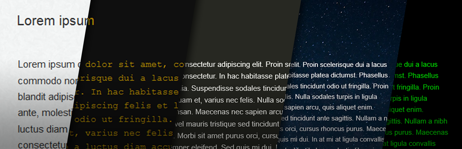 wordpress.org/plugins/distraction-free-writing-mode-themesProvides dark and light themes for for Distraction Free Writing mode. Use one of the beautiful built-in themes or write your own.
