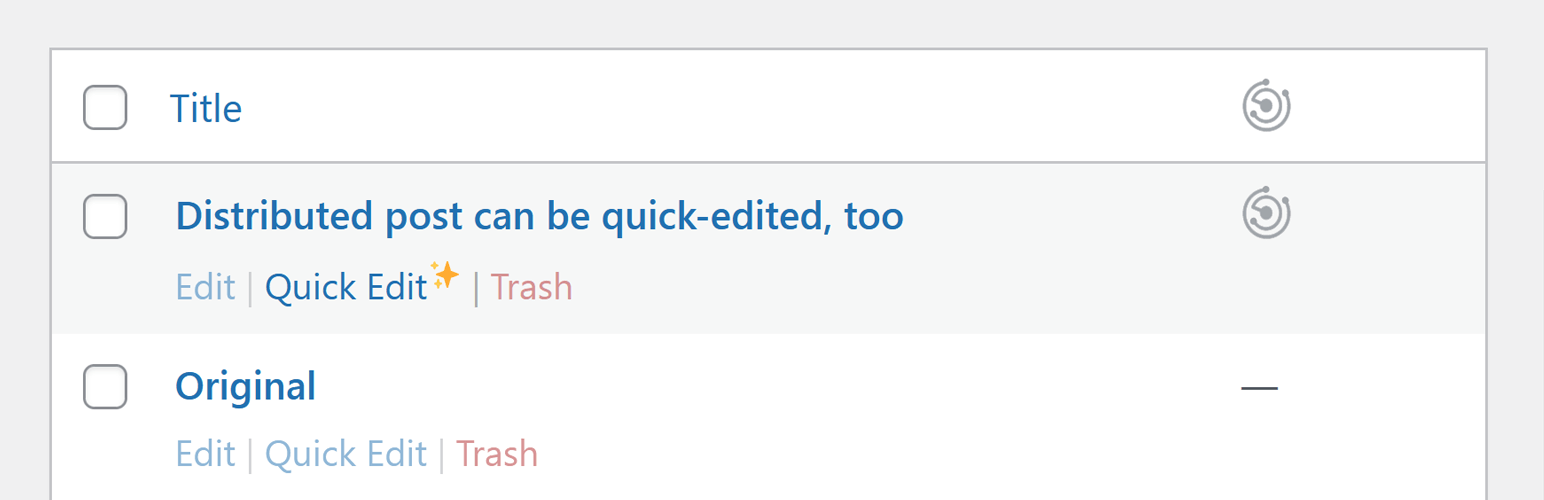wordpress.org/plugins/distributor-remote-quickeditRe-enable quickedit for distributed posts.