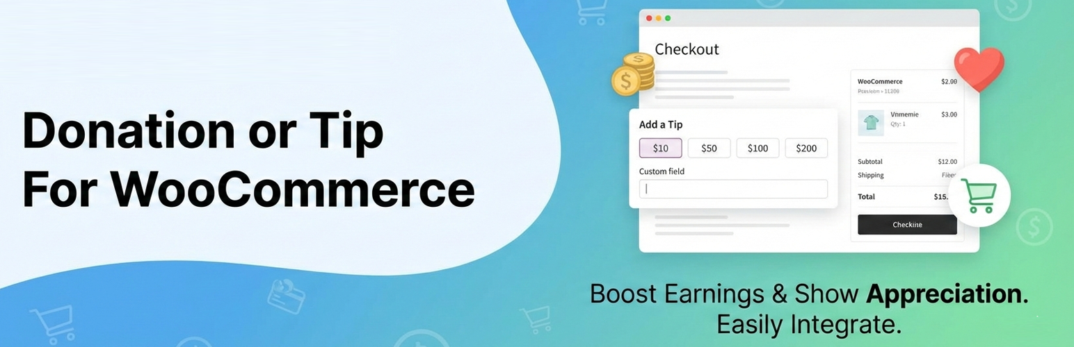 wordpress.org/plugins/donation-or-tip-for-woocommerceAdd a customizable donation or tip field to your WooCommerce cart and checkout page. Support fixed amounts, percentage tips, and custom input — no cod …