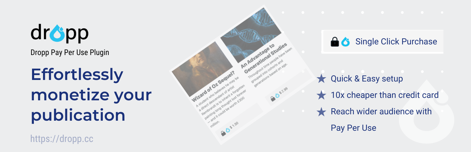wordpress.org/plugins/dropp-pay-per-useEffortlessly monetize your publication with Dropp Pay Per Use. Accept micropayments for your content.
