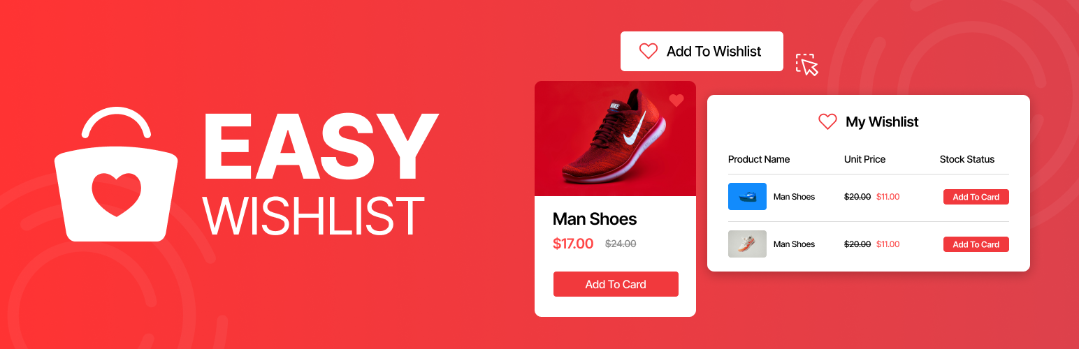 wordpress.org/plugins/easy-wishlistThe Easy Wishlist Plugin provides a wishlist solution for ecommerce websites. Users can wishlist products and view them anytime.