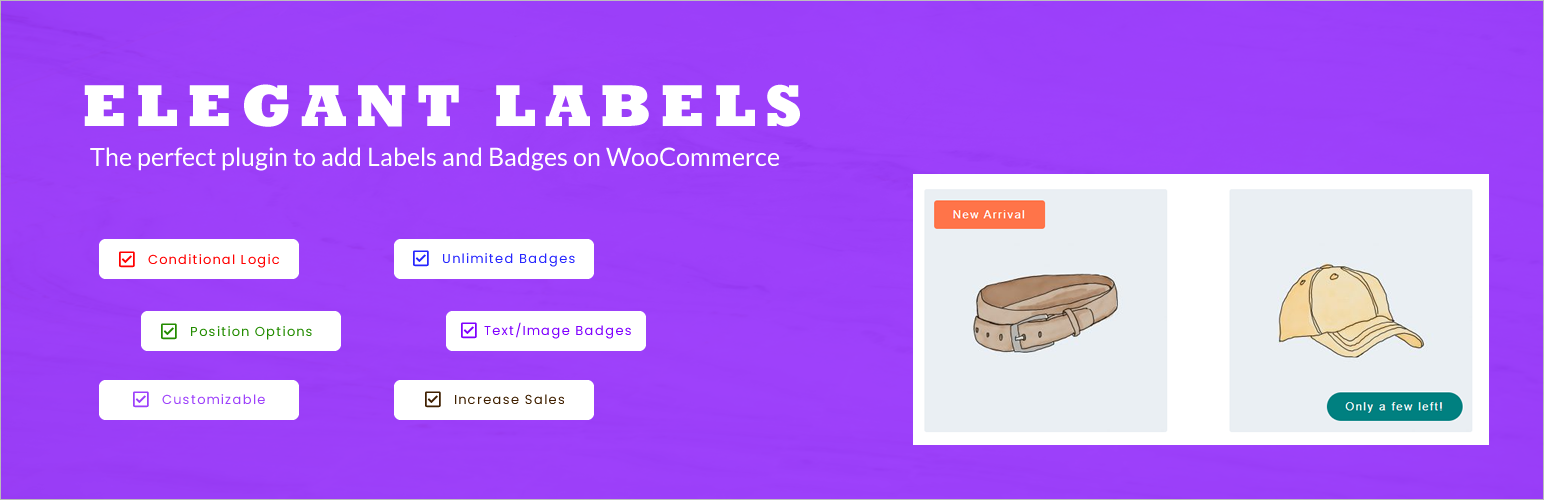 wordpress.org/plugins/elegant-labelsCreate unlimited labels and badges for WooCommerce. Show badges on Images and Product details section.