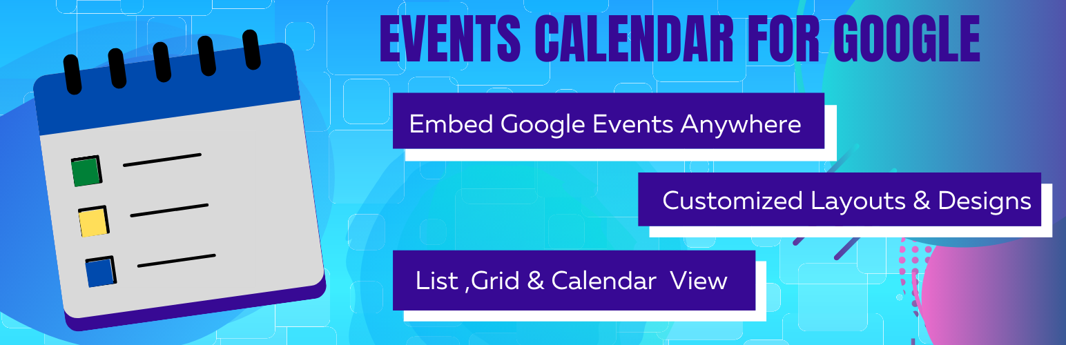 wordpress.org/plugins/events-calendar-for-googleEvents Calendar for Google implements google calender to your wordpress website using different style and layouts. Get connected to your audience usin …