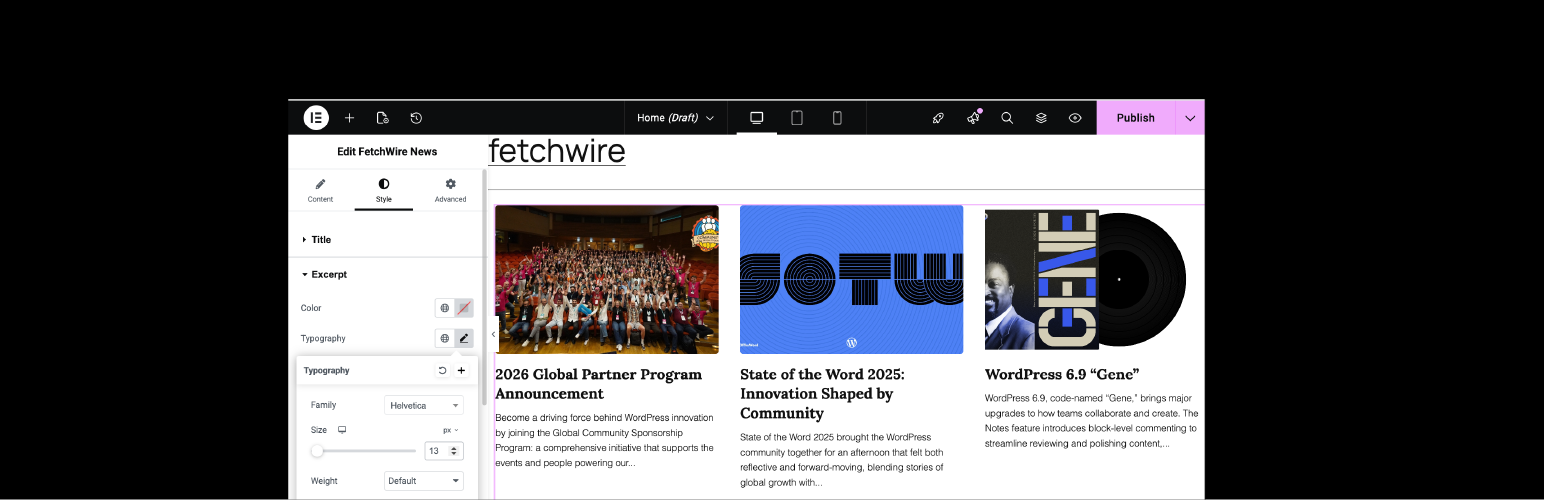 wordpress.org/plugins/fetchwireFetch and display news from any WordPress site using a powerful, highly customizable Elementor widget.