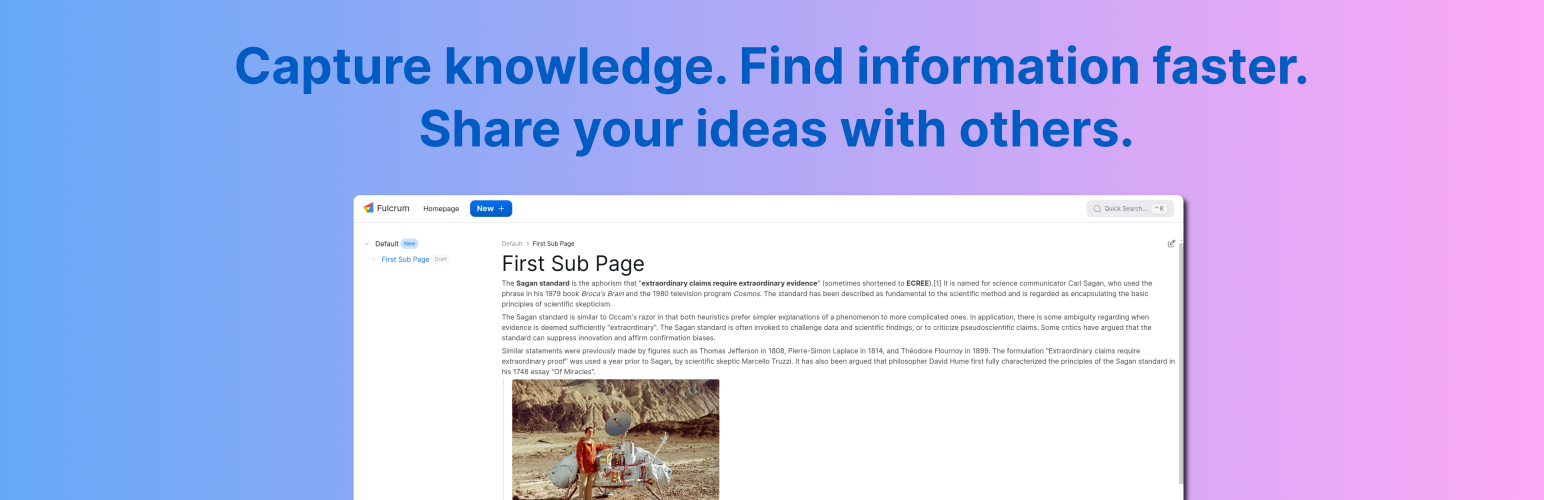 wordpress.org/plugins/fulcrumCapture knowledge. Find information faster. Share your ideas with others. Save projects, meeting notes and marketing plans in WordPress.