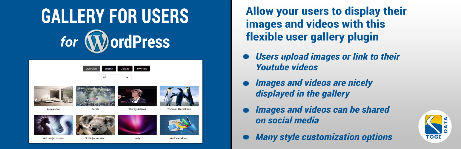 wordpress.org/plugins/gallery-for-usersAllow your users to display their images and videos with this flexible user gallery plugin.