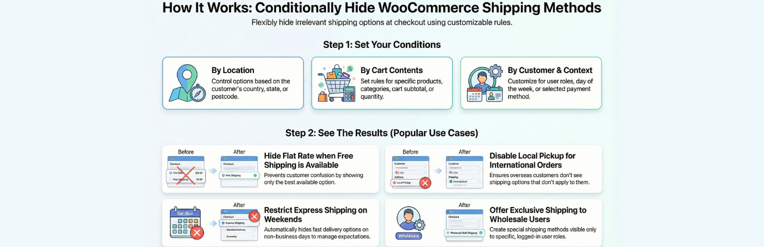 Allows store owners to hide shipping methods based on specific conditions!