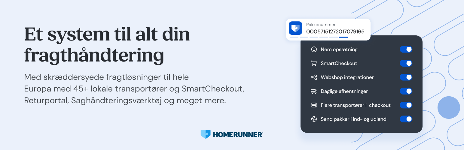 wordpress.org/plugins/homerunner-smartcheckoutHomerunners modul hjælper dig til, at nemt håndtere fragtbestilling på dine ordre.