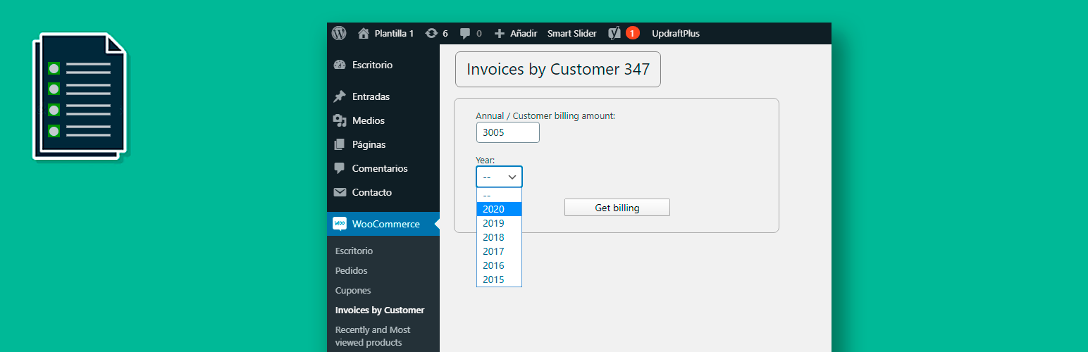 wordpress.org/plugins/invoices-by-customer-347Obtain a list of invoices by quarter and year for customers who exceed a certain amount.