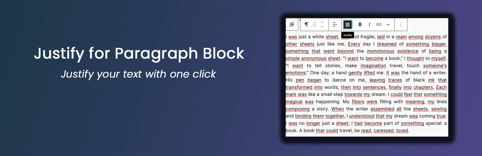wordpress.org/plugins/justify-for-paragraph-blockAdds justify text alignment option to paragraph blocks in the Gutenberg editor.