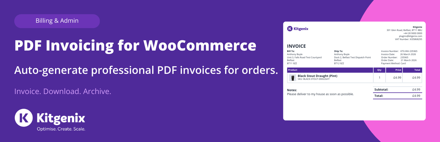 wordpress.org/plugins/kitgenix-pdf-invoicing-for-woocommerceGenerate PDF invoices, receipts, packing slips and credit notes for WooCommerce. Overrides, customer downloads, and configurable email attachments.