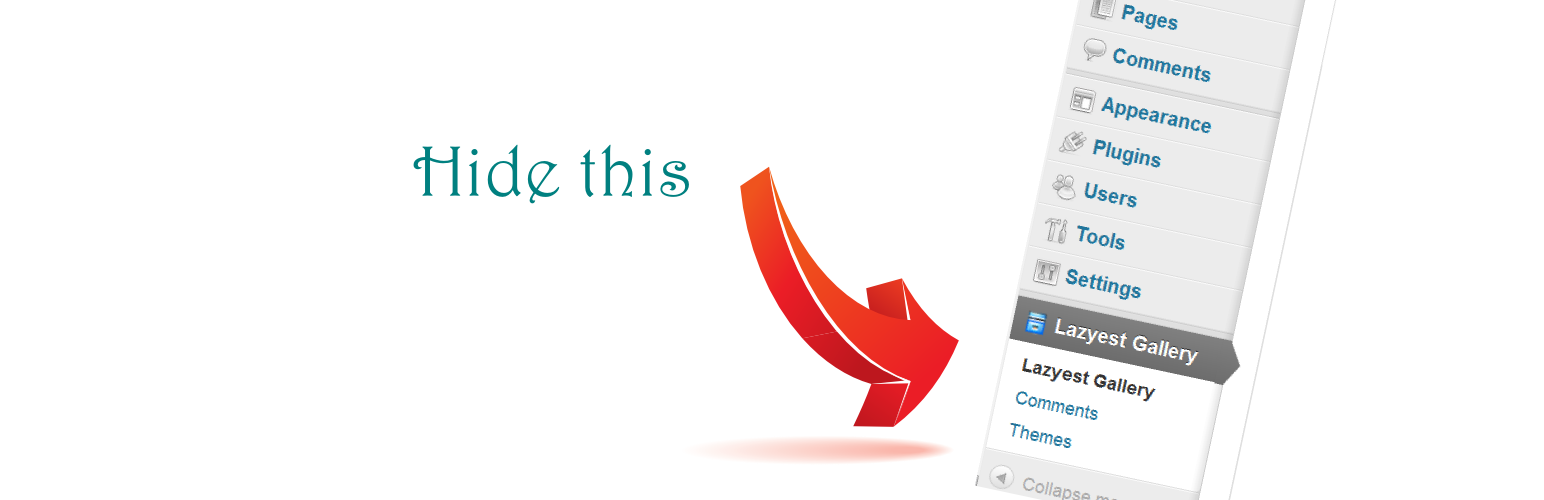 wordpress.org/plugins/lazyest-gallery-hide-menuHide the Lazyest Gallery admin menu item from all users except administrators. Avoids users deleting your pictures.