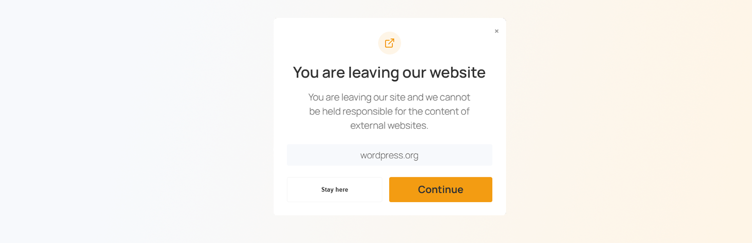 wordpress.org/plugins/leaving-notice-popup-for-external-linksShow a customizable popup notice when visitors click on external links, with options to continue or stay on your site.