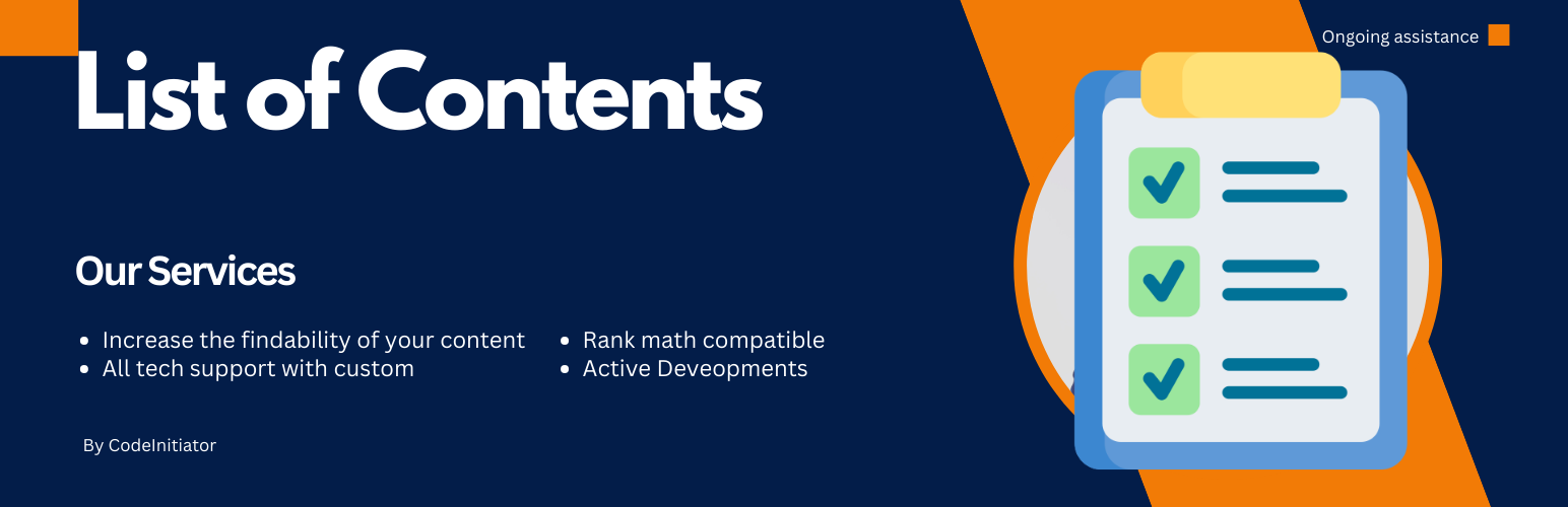 wordpress.org/plugins/list-of-contentsAutomatically generate a list of contents/table of contents for your posts, pages, and custom post types. Compatible with page builders and plugins.