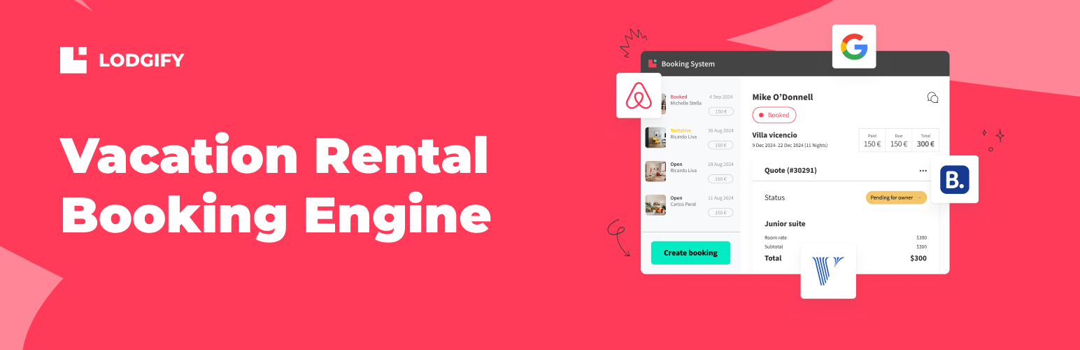 wordpress.org/plugins/lodgify-booking-engineEasy to use booking engine for your vacation rental website. List your rentals on your site and save on commissions (from big OTA's).