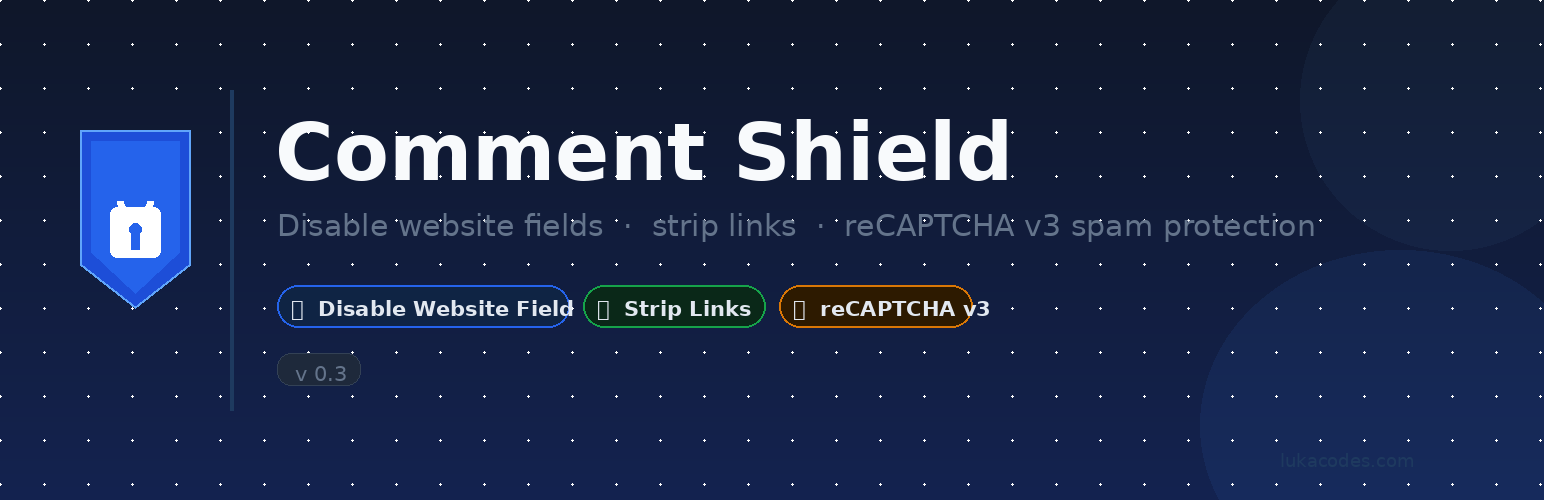 wordpress.org/plugins/lukacodes-comment-shieldBlock comment spam, brute-force logins and bot registrations with reCAPTCHA v3 or Cloudflare Turnstile. Lightweight, no bloat.