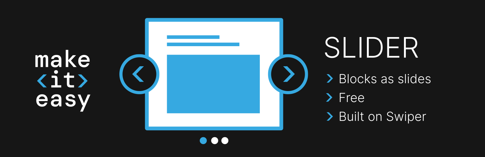 wordpress.org/plugins/makeiteasy-sliderSlider based on very popular library Swiper! Insert blocks as slides. Truly open source.