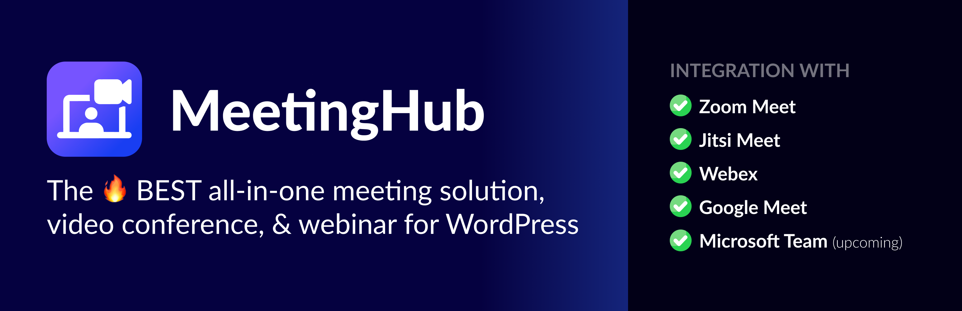 wordpress.org/plugins/meetinghubMeeting plugin to create instant webinars and meetings with Zoom Meeting, Google Meet, Jitsi Meet, Webex, & Microsoft Teams.