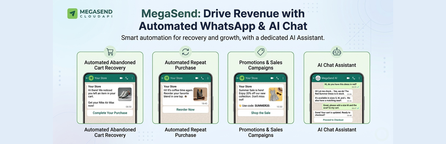 wordpress.org/plugins/megasend-for-woocommerceRecover abandoned carts and boost sales with automated WhatsApp messages powered by MegaSend.
