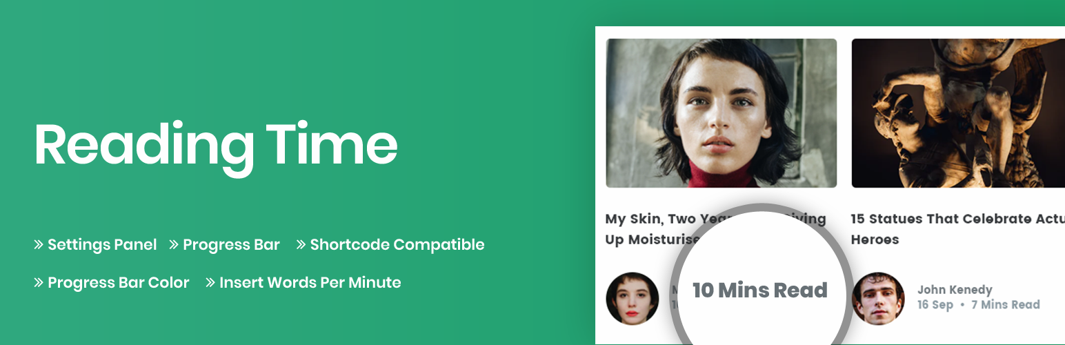 wordpress.org/plugins/my-reading-time-liteReading Time lite plugin enables an estimated reading time that inserted above or bottom in post. Insert anywhere using shortcode too.