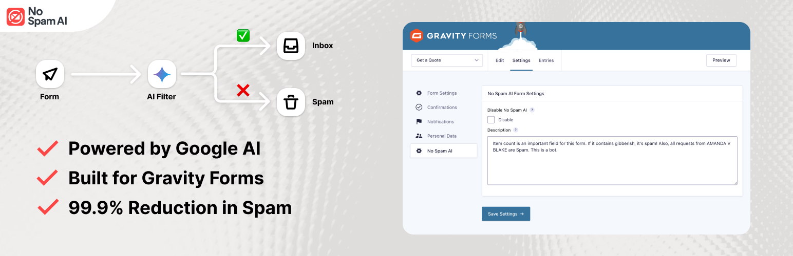 wordpress.org/plugins/no-spam-aiAI-powered spam filtering for Gravity Forms. Automatically detects and blocks spam submissions using advanced AI algorithms.