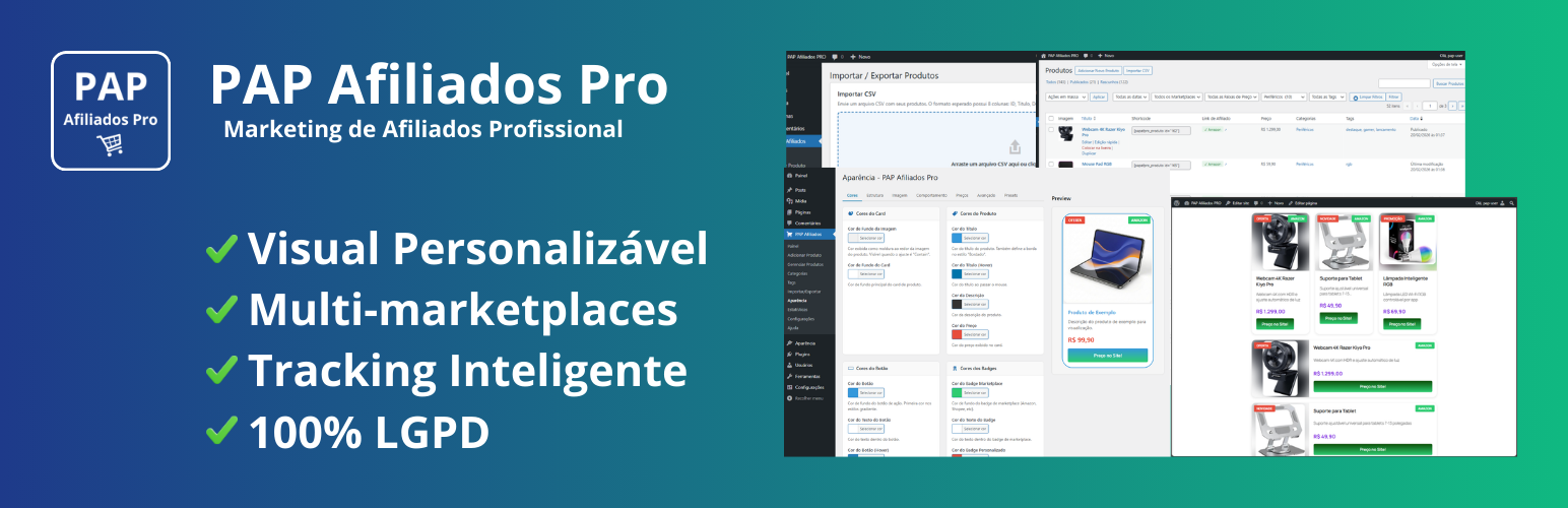 wordpress.org/plugins/pap-afiliados-proManage affiliate links for Amazon, Mercado Livre, Shopee, AliExpress and others with customizable templates and detailed stats.