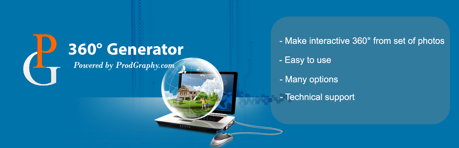 wordpress.org/plugins/pg-360-generatorEasy way to make interactive 360° from set of photos ,also provides many options like size control , color /light control and filters, custom cursor s …