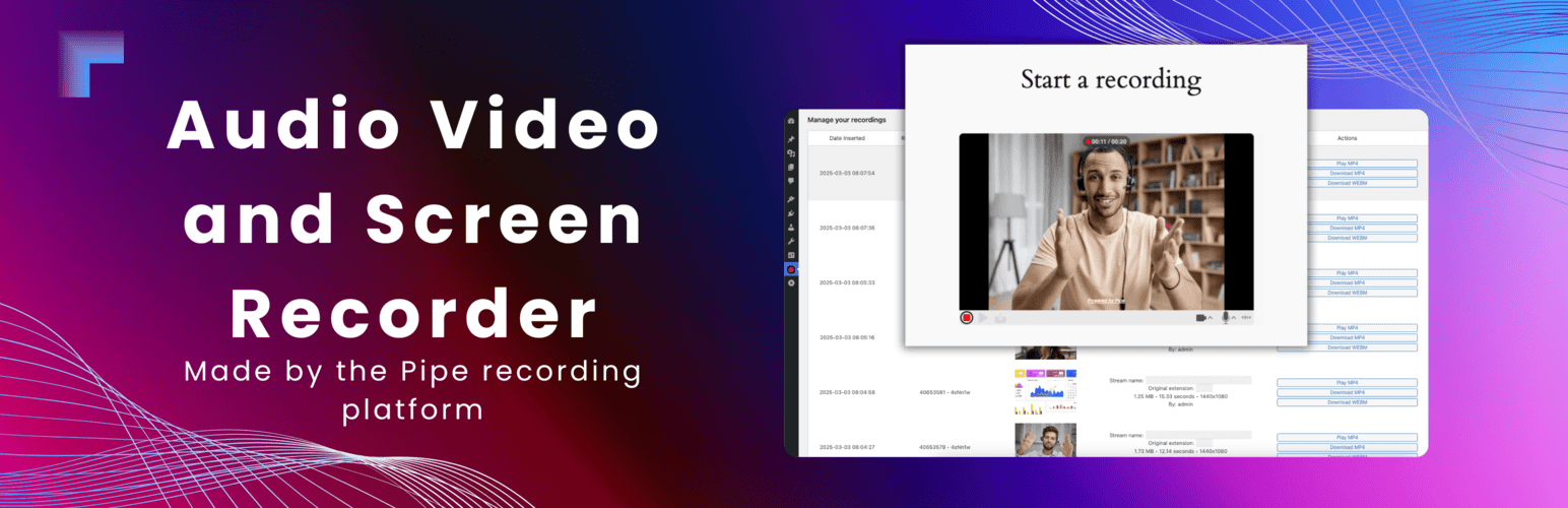 wordpress.org/plugins/pipe-audio-video-and-screen-recorderThis plugin simplifies the integration between the Pipe Platform and WordPress. It lets your website users and visitors record audio, video, and scree …