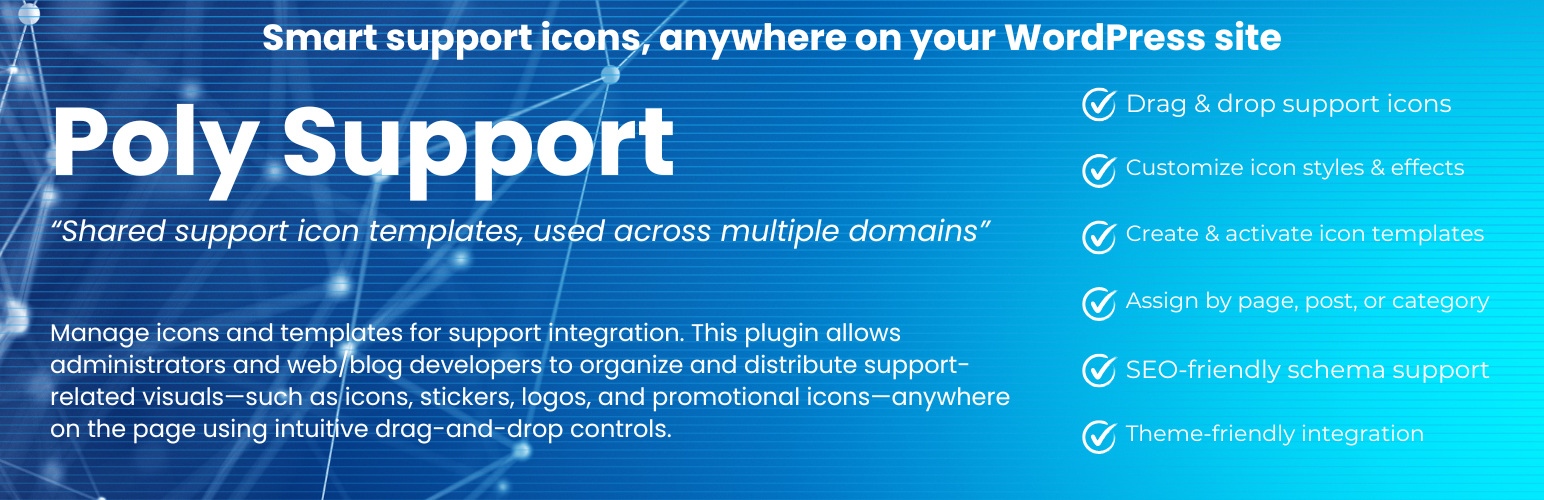 wordpress.org/plugins/poly-supportManage icons and templates with drag-and-drop support for easy placement of icons, stickers, logos, and promotions anywhere on the page.
