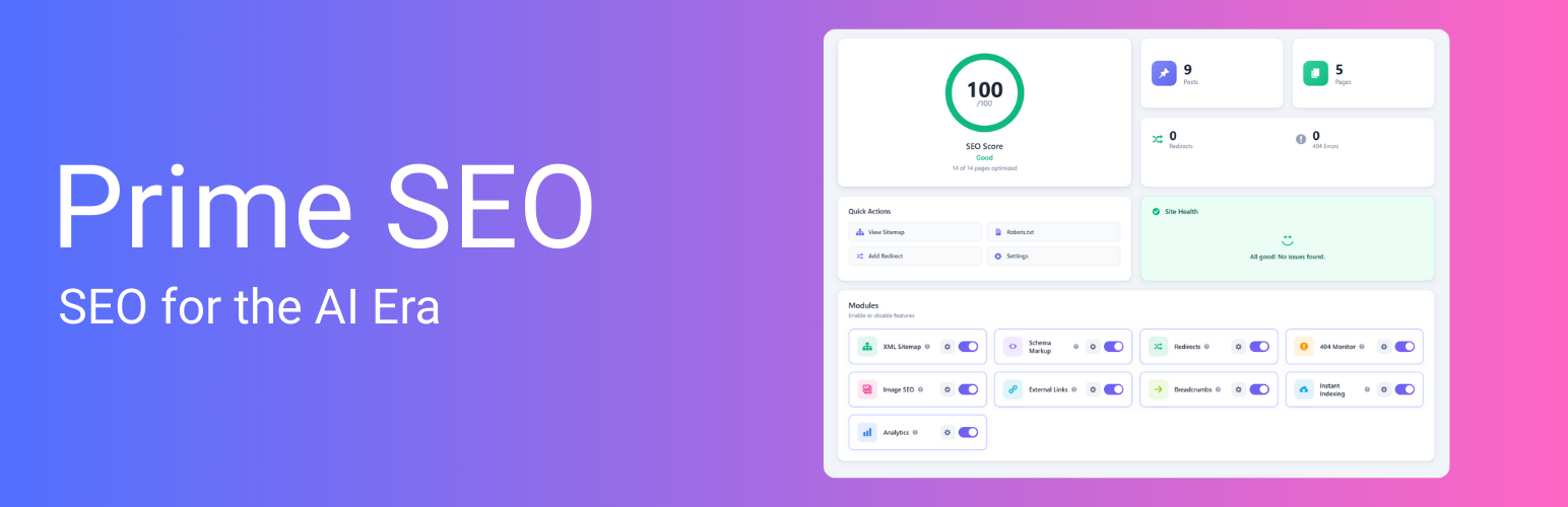 wordpress.org/plugins/prime-seoSEO for the AI Era. LLMs.txt, AI Bots Manager, Schema, Sitemap — optimize for Google, ChatGPT, Perplexity & Claude. AI meta generation (Pro).