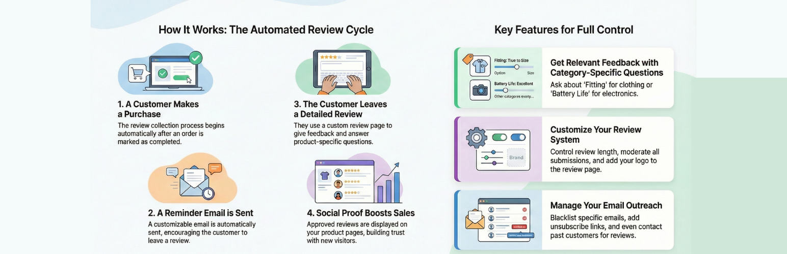 Collect, manage, and display powerful product reviews and testimonials for WooCommerce stores. Boost trust and conversion with automated review collec …